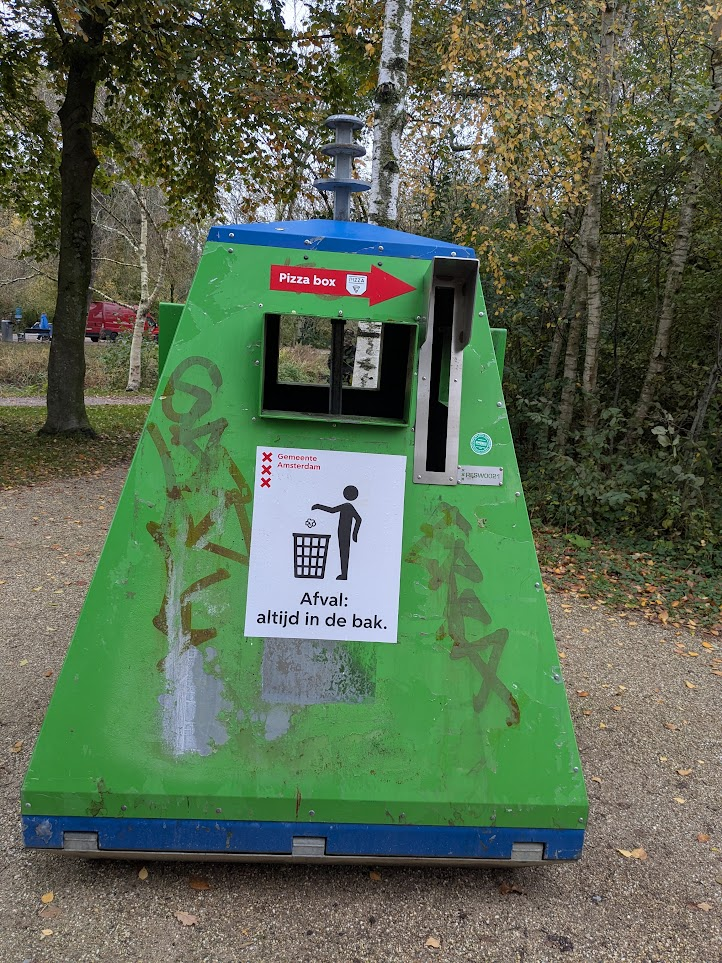 I biked around with a few coworkers my first day. Their trash receptacles have a special pizza slot!