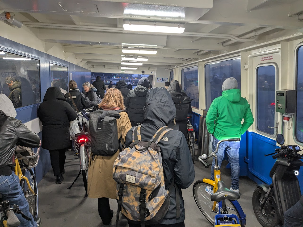 Anyway, we got a couple ferries that day, which are frequent and free, and filled with bikes: