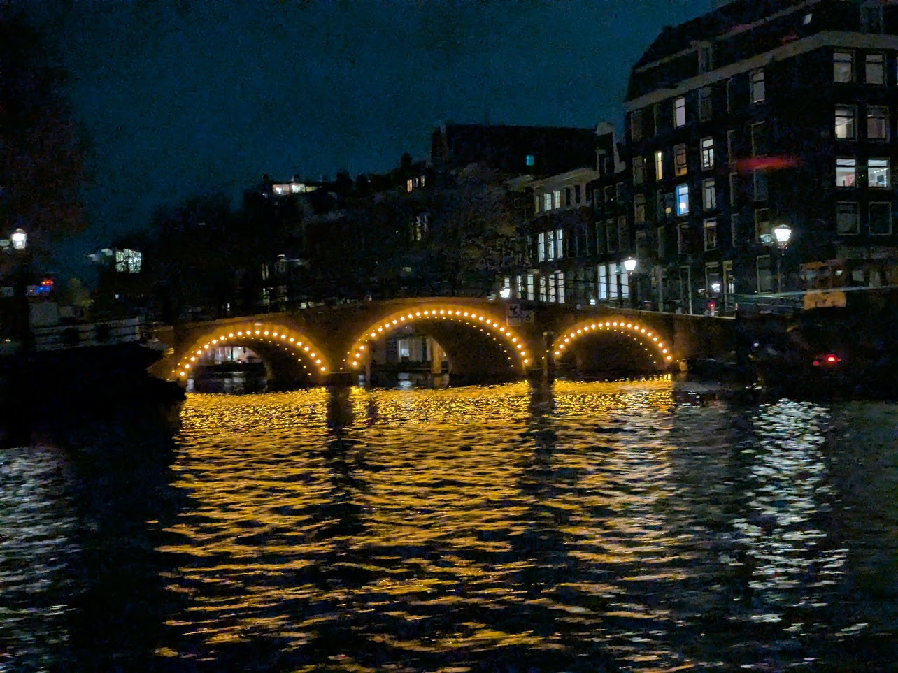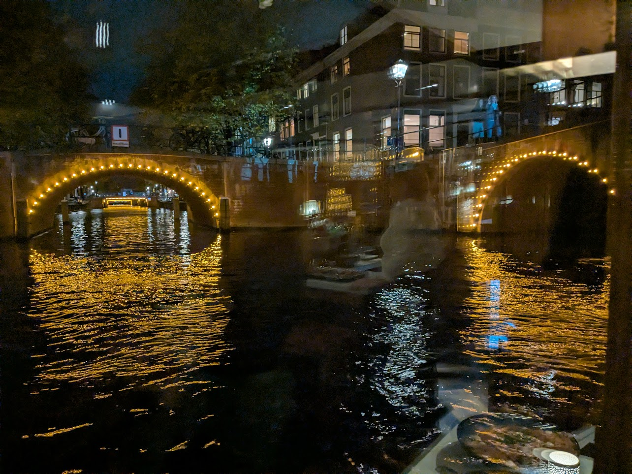 One night my work hired a canal cruise boat with a dinner buffet, which was lots of fun. At night the canals get lit up and it’s very cute: