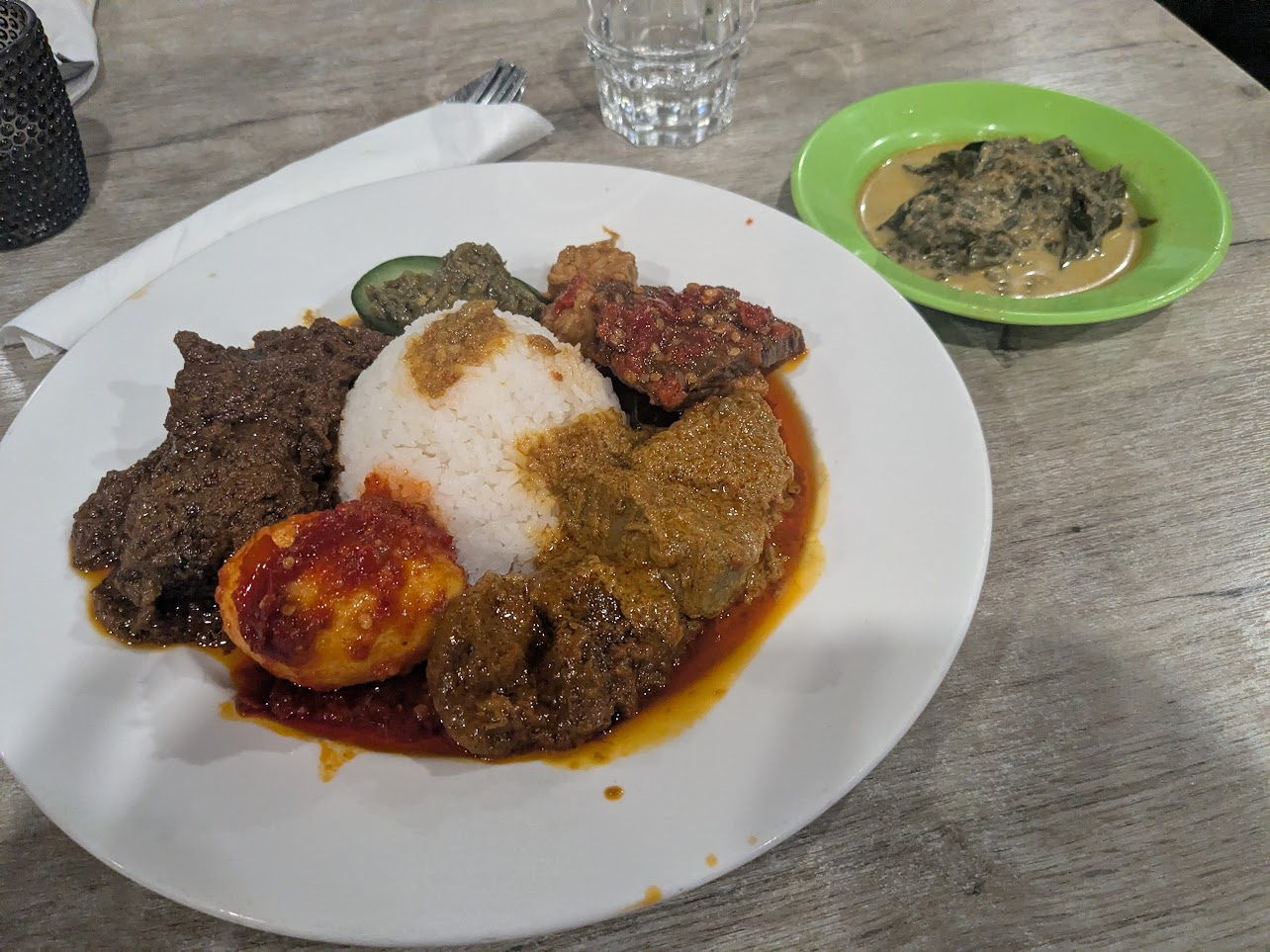 that sampler plate included beef Rendang (🤤), jackfruit curry, a coconut spinach cream thing, some really good tempeh, the spicy hard boiled egg, and… dogfruit! I hadn’t ever had it before, but I really liked the texture of it.