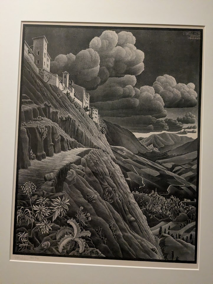 I went to the MC Escher museum in the Hague, which I highly recommend. I didn’t realize that before the stuff he’s more famous for, he mostly did landscapes and similar, mostly of Italy, where he spent a lot of time: