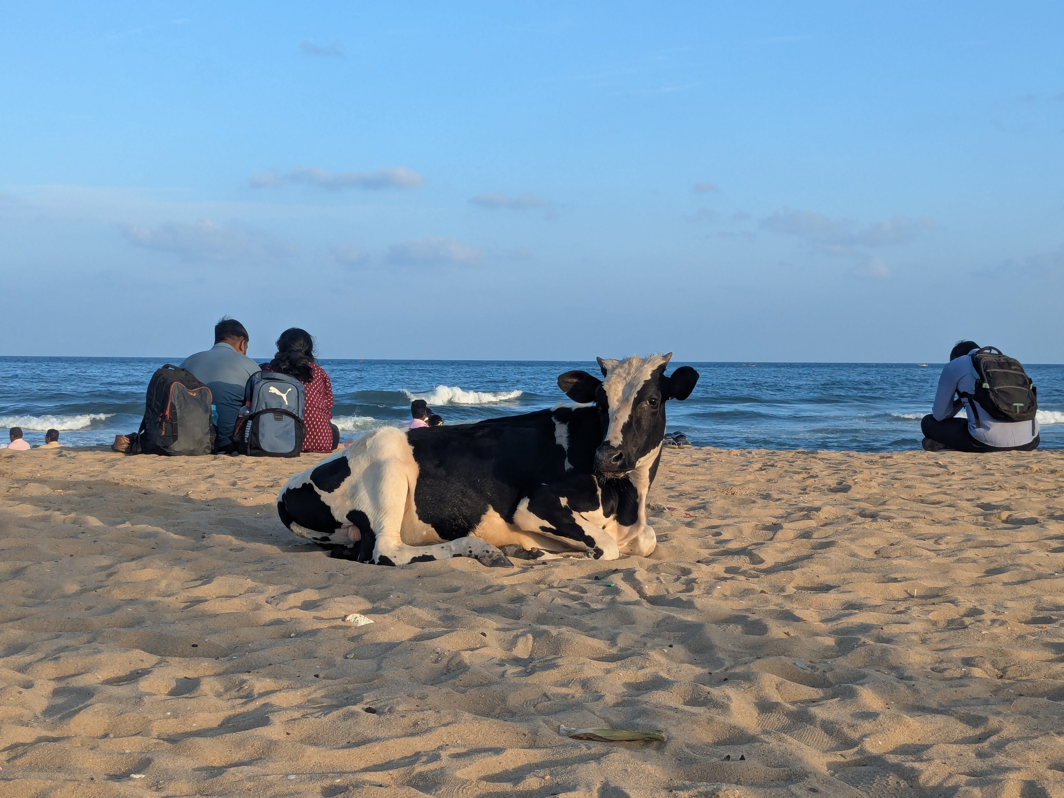 It’s very strange to see a cow on a sandy beach.