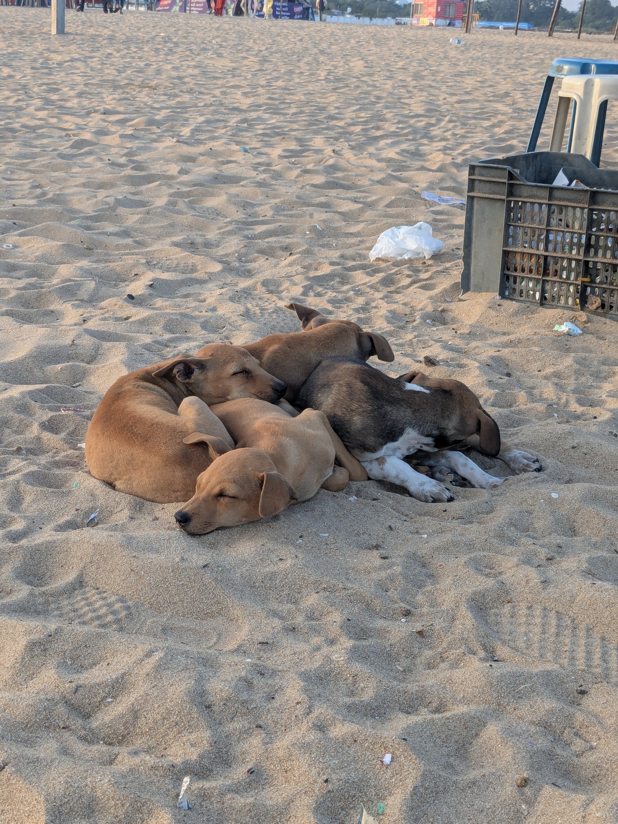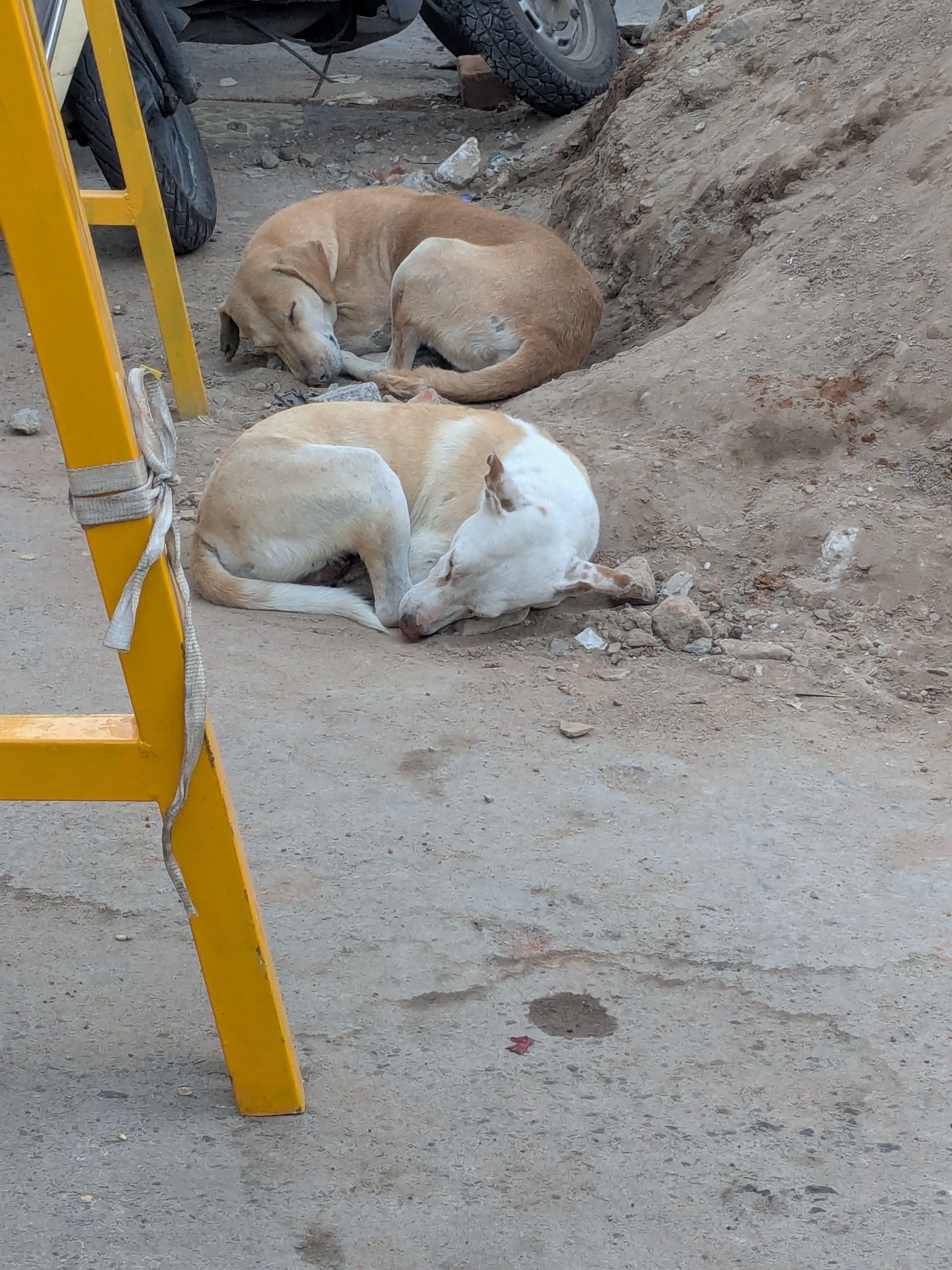 The dogs are so accustomed to the chaos that they can sleep on the road with a motorcycle roaring by them and not even wake: