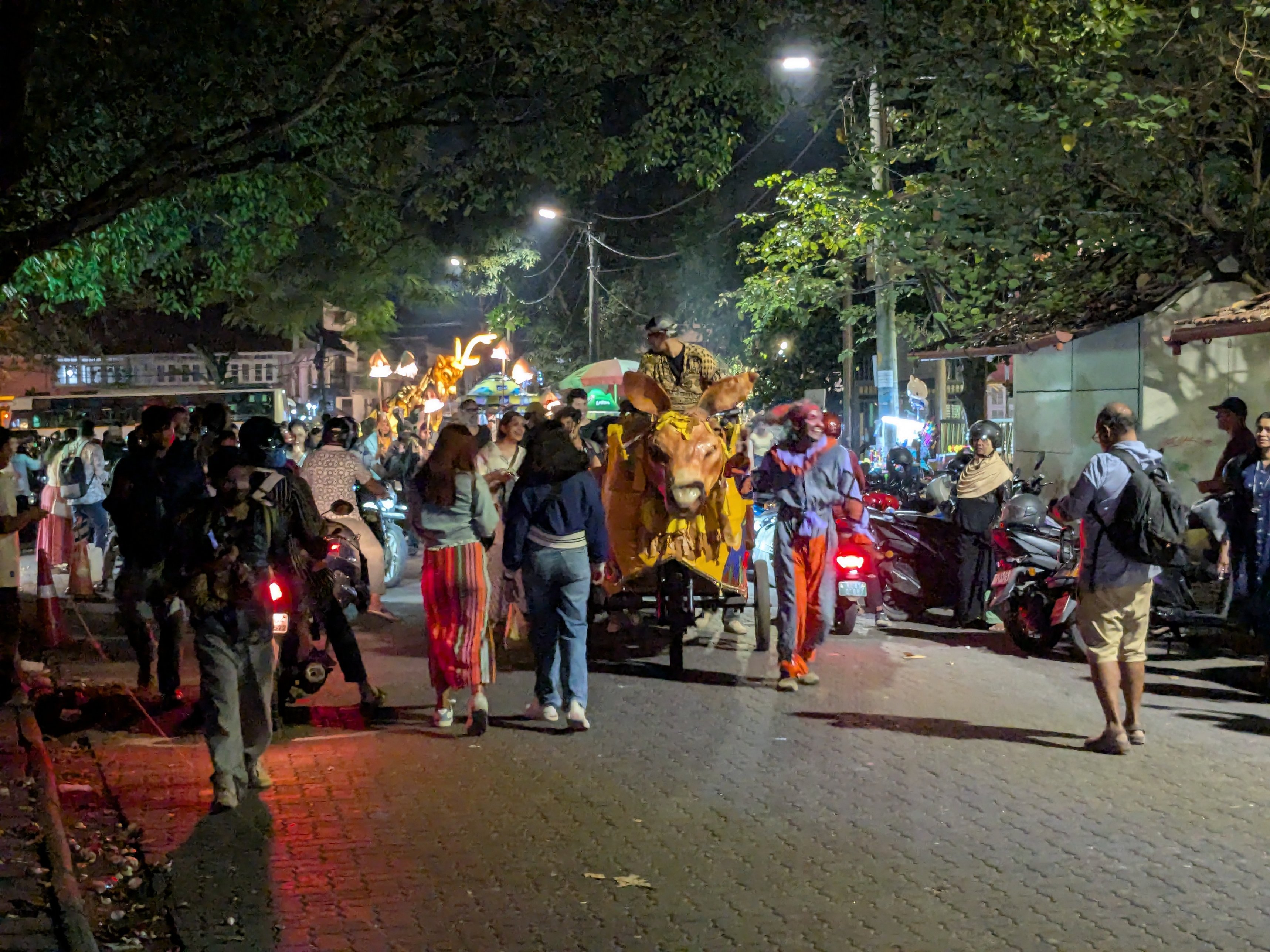 One night as we were out, we heard a big commotion. We looked towards the source of the noise, and it was some sort of… brass band parade? led by the jester guy in front. Very reminiscent of the “honk” type festivals we have around here: