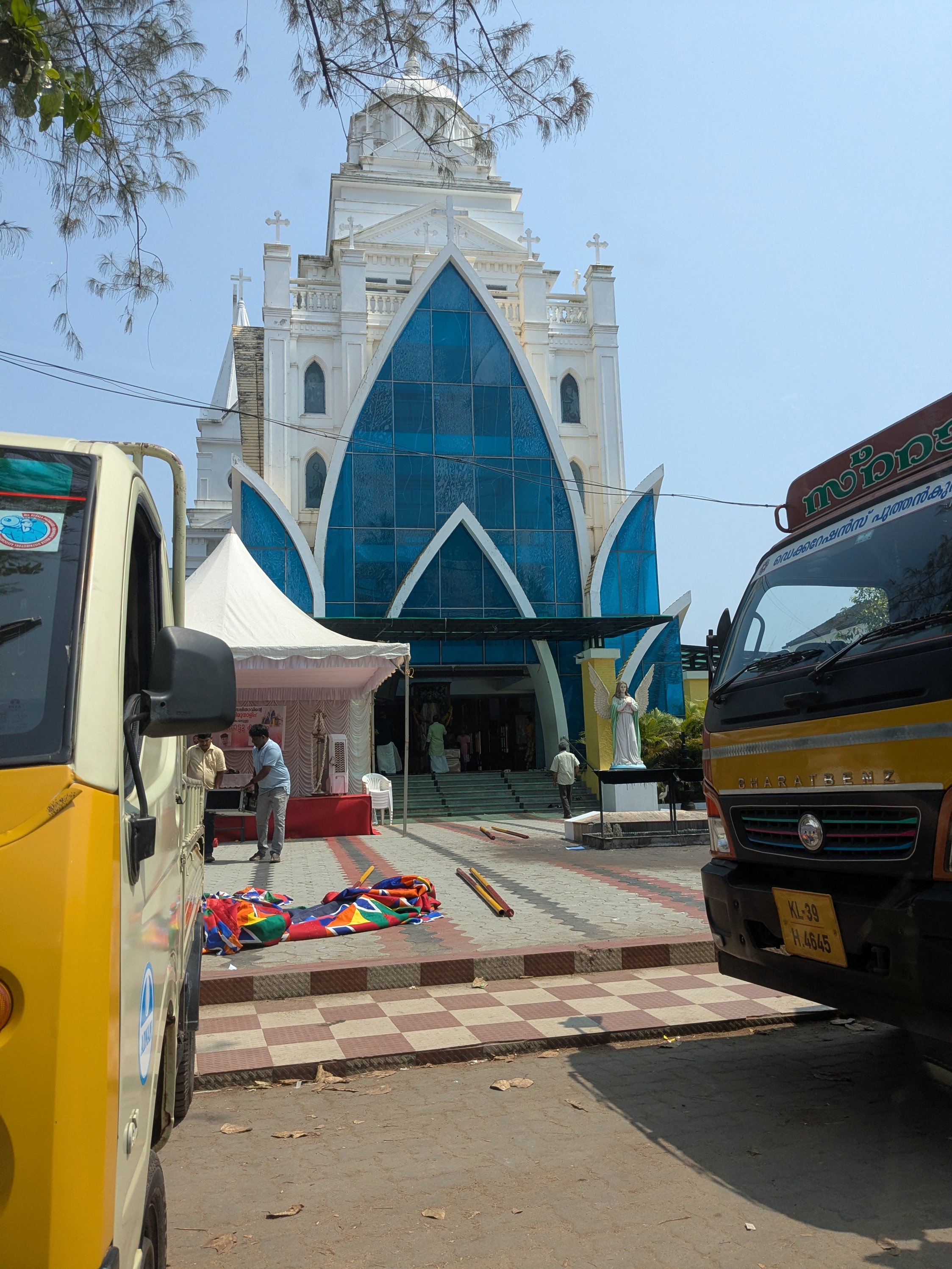 In Kerala, there’s a much higher population of Christians than in other parts of India. One cool thing we noticed is that while their churches have many of the symbols/etc you’d expect, they also have a really different aesthetic than western churches: