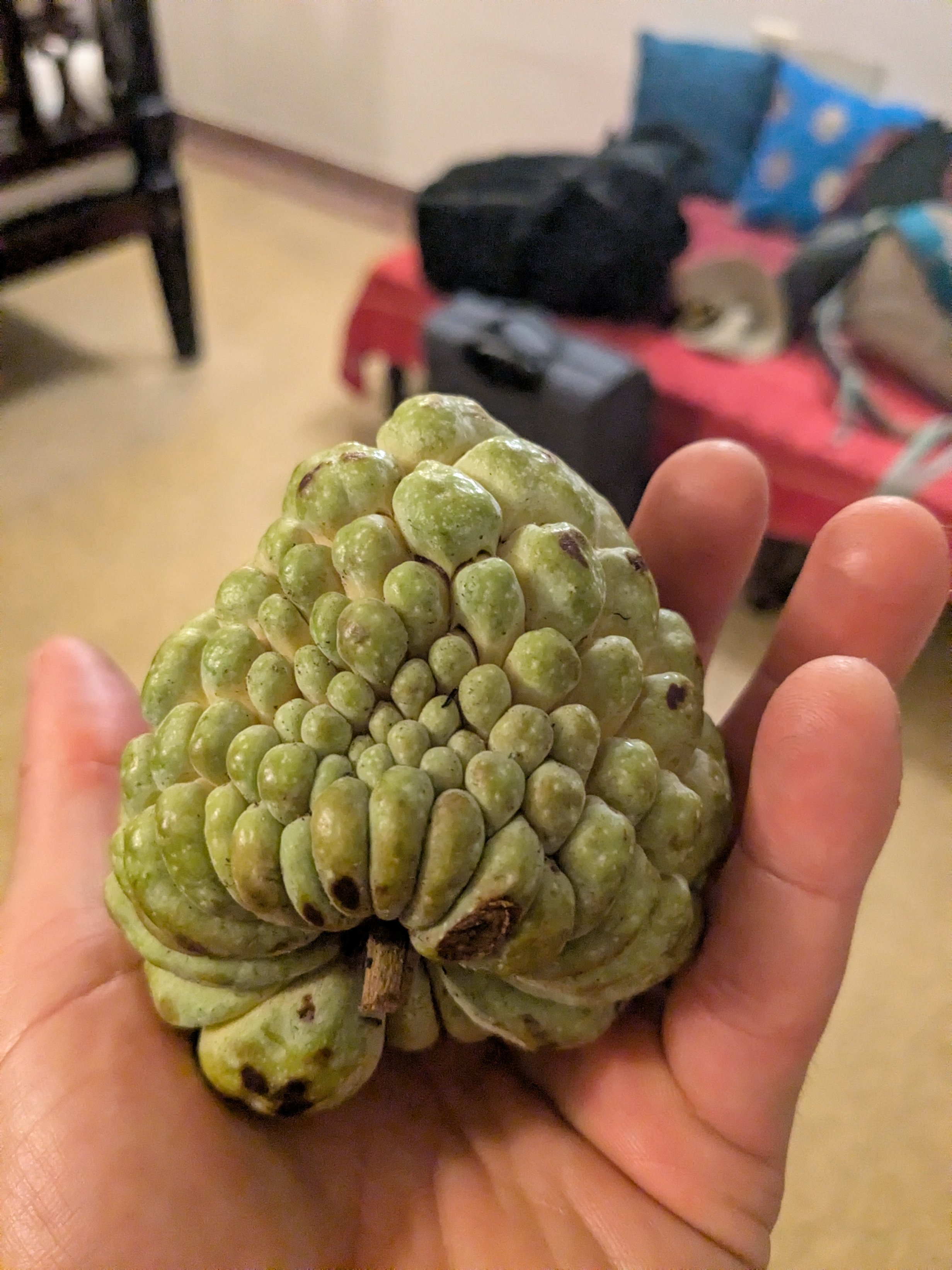 So, I think my question about the custard apple was a little special to him, and he told me he’d find us some before we left, despite our protests that it wasn’t necessary. And lo and behold, when we came back he had managed to find some!