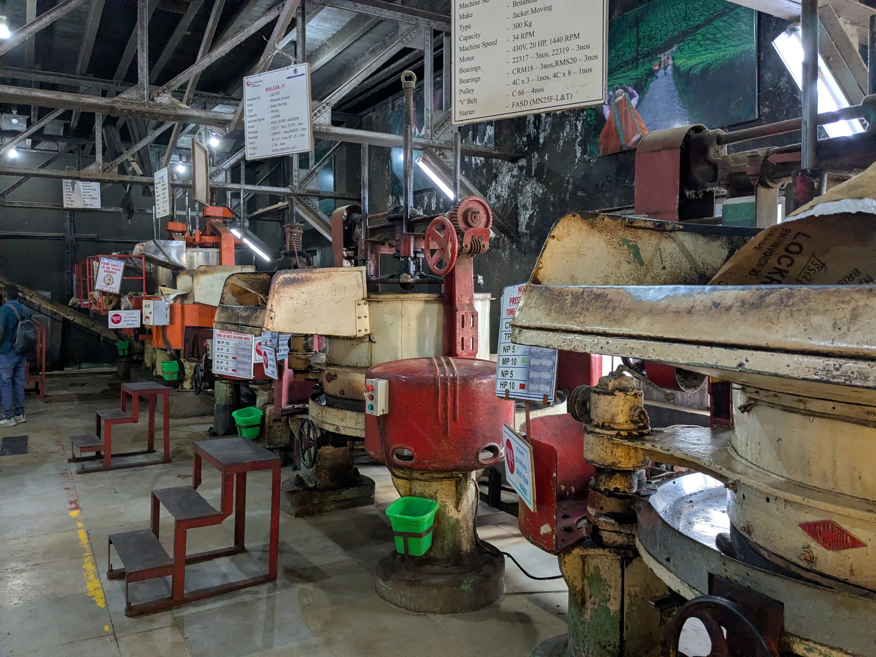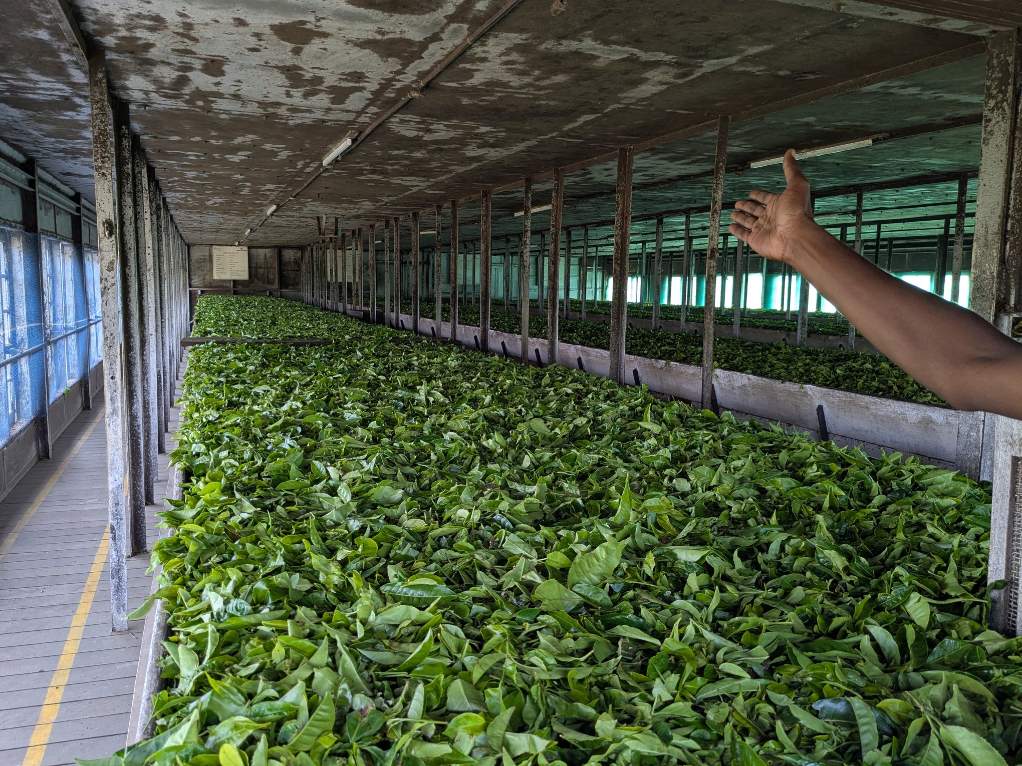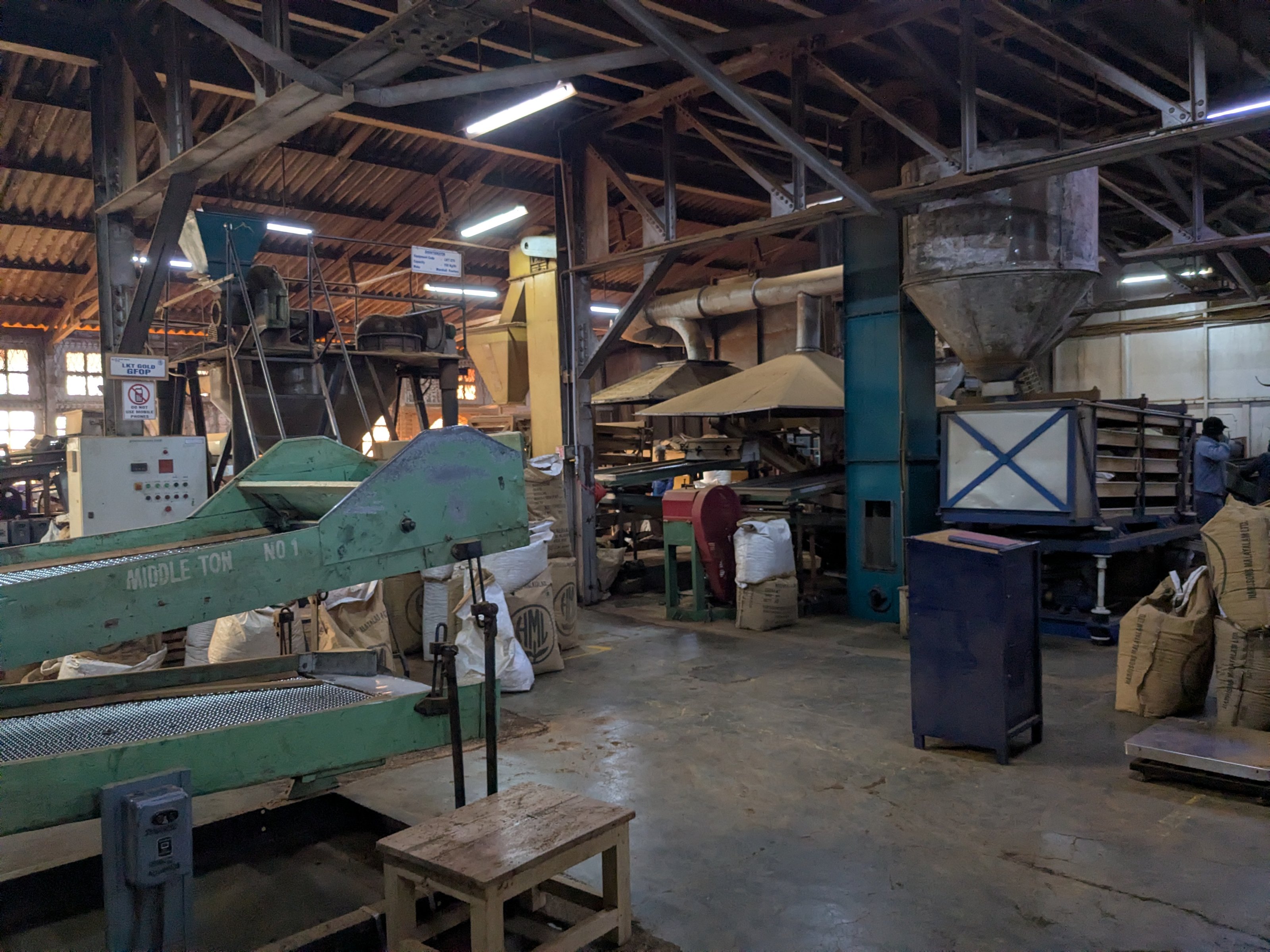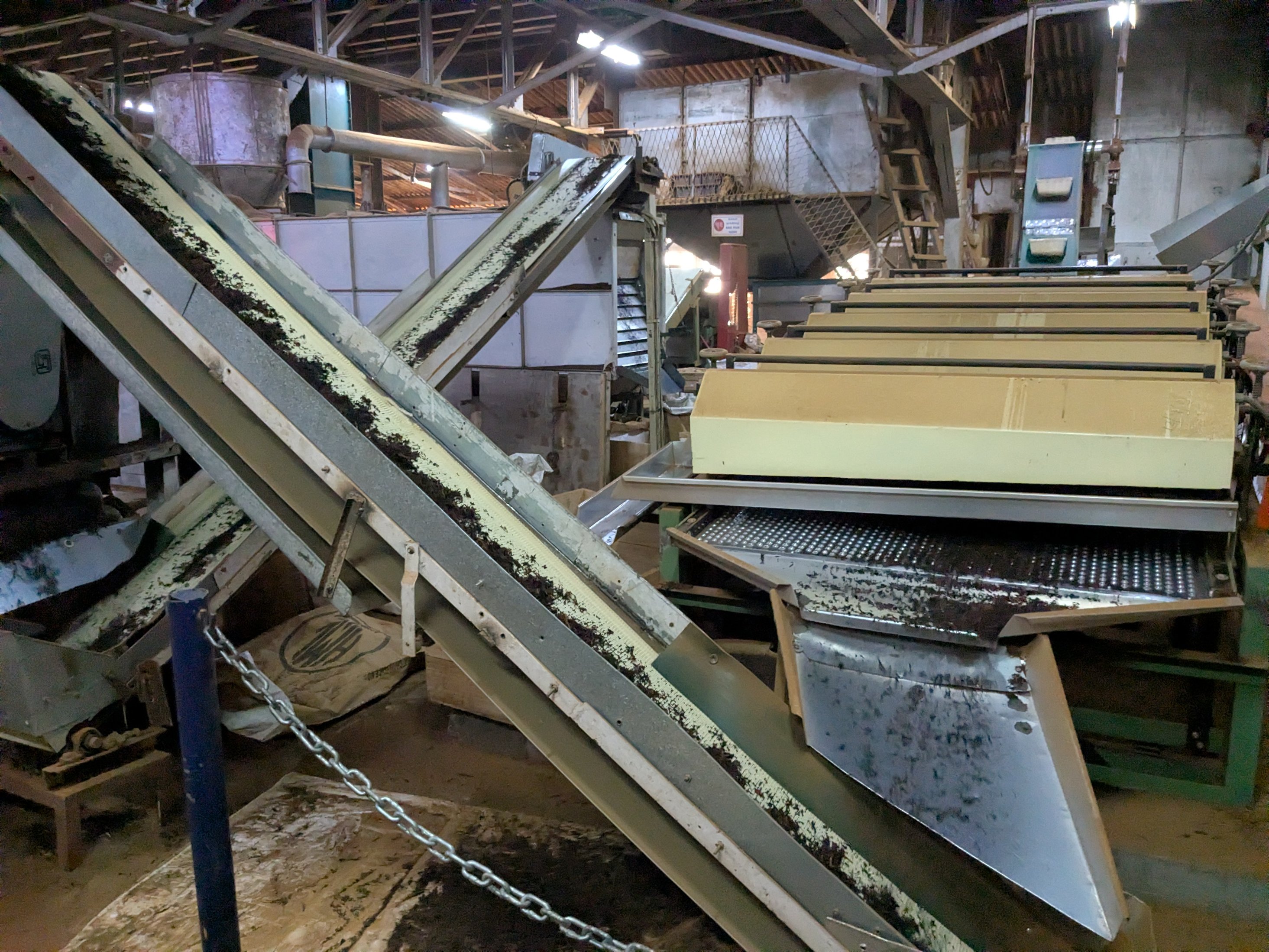 The last stop on the tour was the tea factory. I kind of assumed it would either be a defunct one, or a real one and we’d just see a few lame things behind glass, but… they let us in pretty much everywhere, and on the factory floor with machinery jiggling all over!