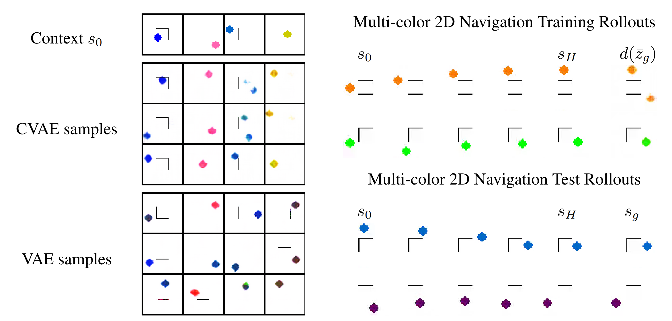 The CC-RIG paper is all about doing this for the purpose of generating meaningful goals for helping the learning process. Above I mentioned that despite this, although I’m actually not doing RL here, I think it should be fine because my purpose (goal?) is generating a specific type of goals, and I’m assuming that the policy can go to any real goal already. Therefore, it’s not super relevant for what I want.