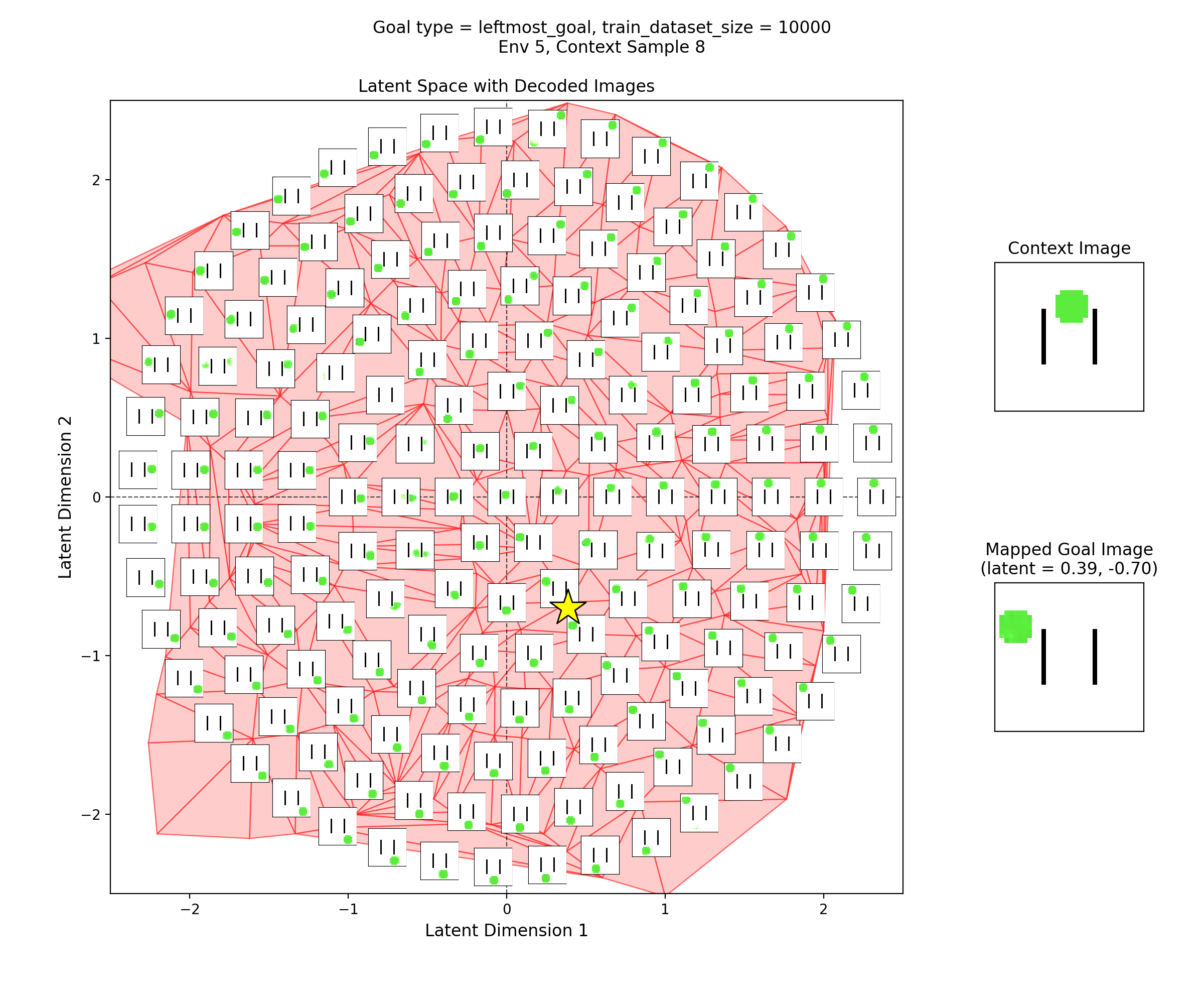 Let’s assume we have some environment, tons of data from it, and we’ve actually successfully trained our CCVAE model and the corresponding GCRL policy. Recall that this means that, for any state the agent is in, if you give me a goal state, we can plug it into the CCVAE, get the latent vector for the current and goal states, and plug that into the policy.