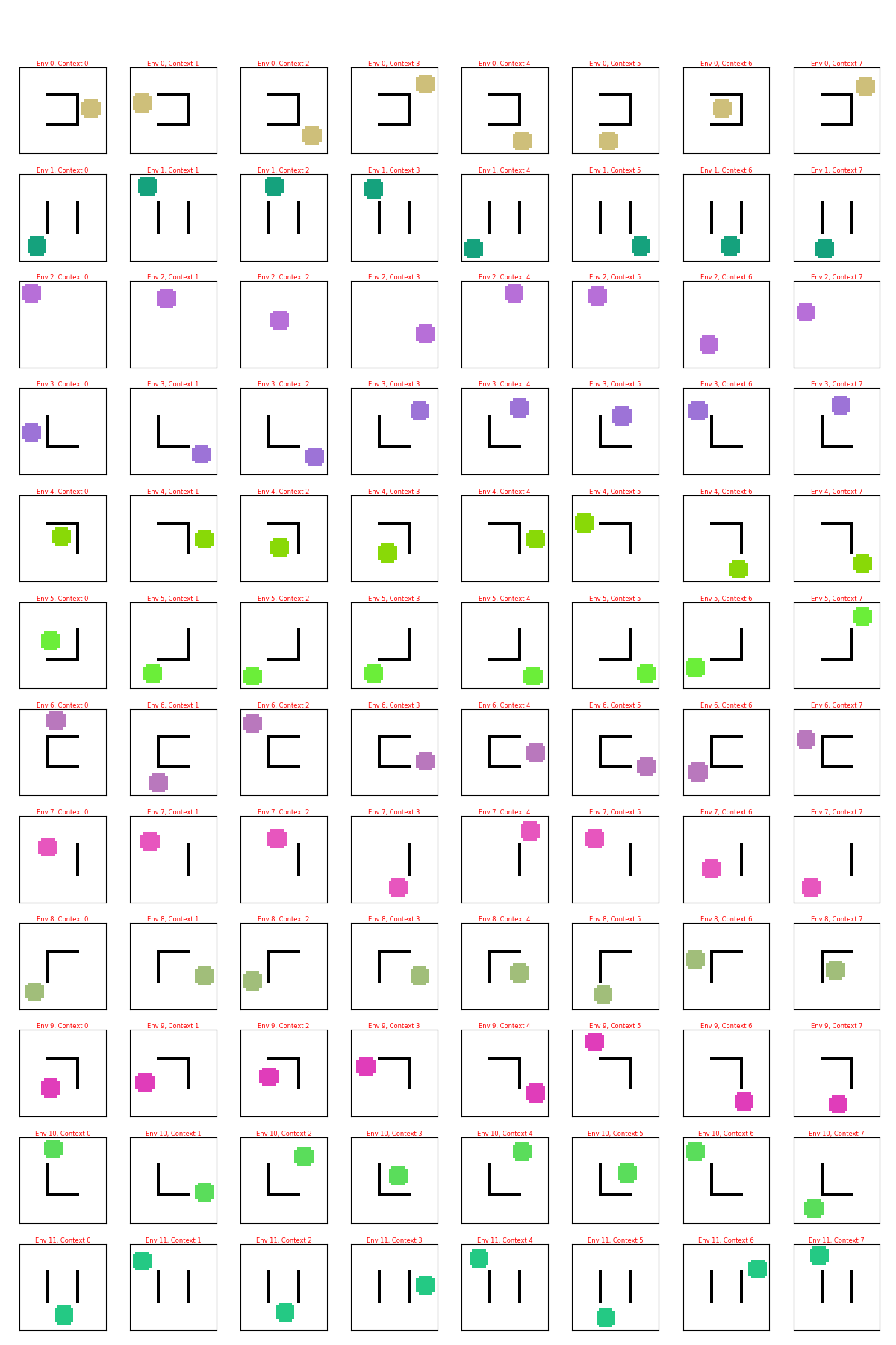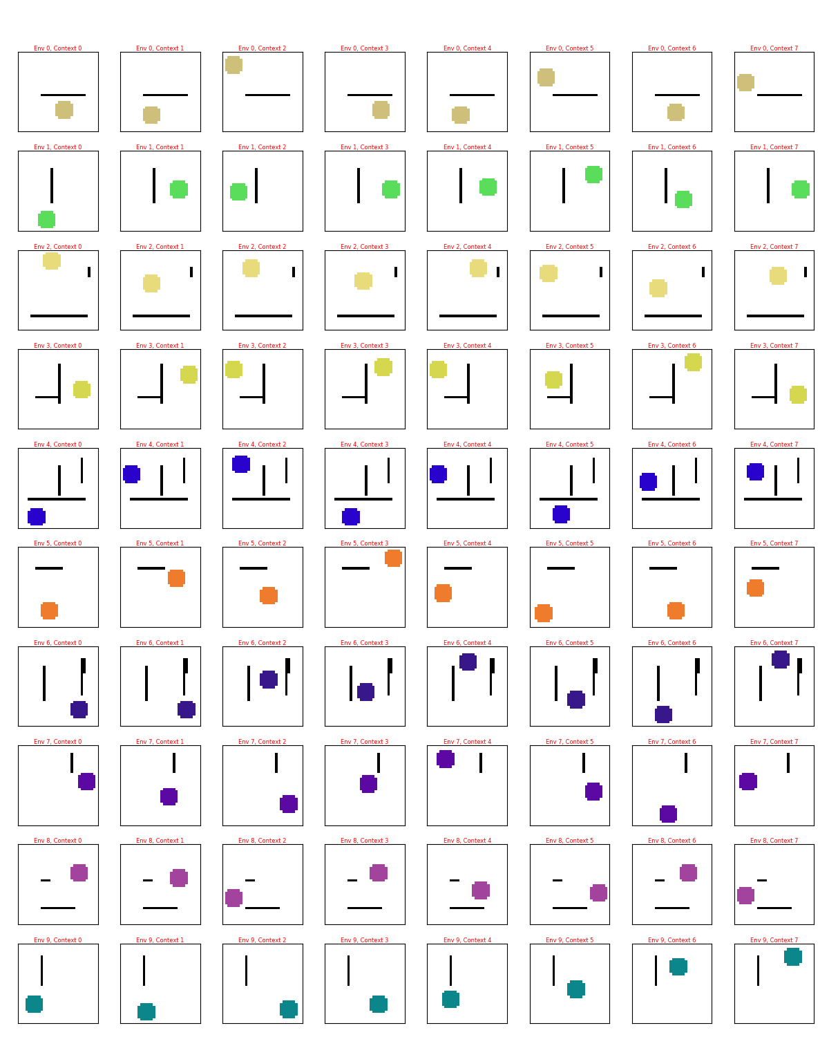 I’m going to informally say “env” to mean a sampled environment, i.e., a given position of the walls and circle color. Note that for a given env, the circle color and wall positions are the same, but the circle moves to different valid positions.