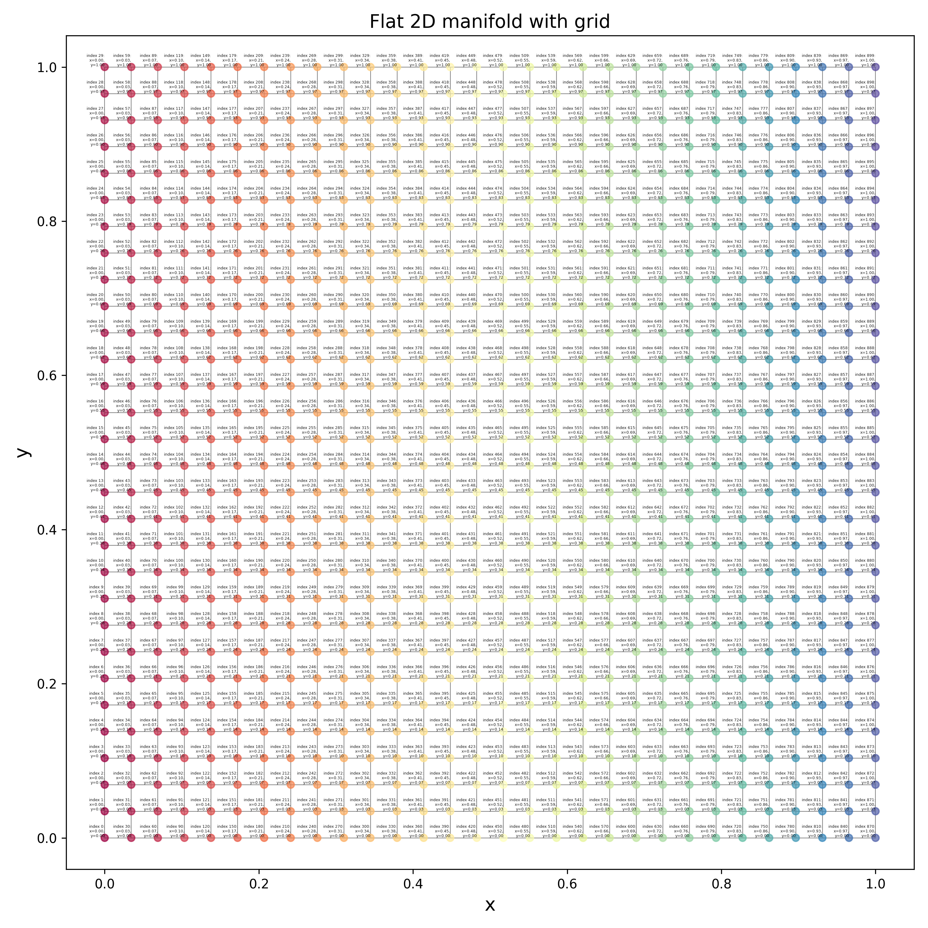 You can compare this to the flat rectangular 2D plot with all the per-node indices/coordinates above. For example, the dark red colored node is the same one in all of the plots above.