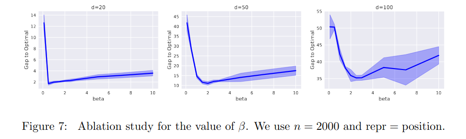 which I’ll be trying to reproduce. This is important, since I suspect there might be enough slight differences between my implementation and theirs that the good $\beta$ values they found wouldn’t work as well for me, so I want to find good $\beta$ values for my setup, that I’ll use for the other experiments (I actually used the values found here for the “gap to optimal” ones above).