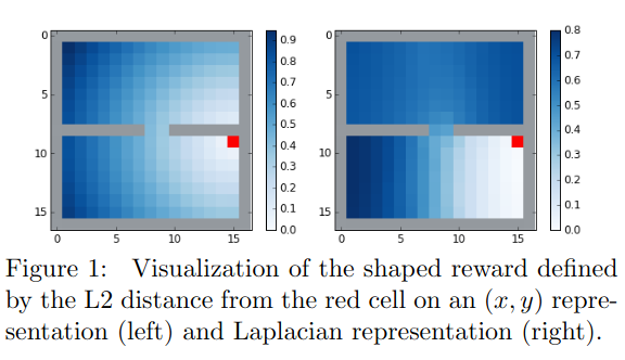 As I mentioned in the reward shaping section, there they use multi-step transitions. Without going too deep into it, the generalization of the weights $w_{ij}$ to the continuous case is basically a kernel function $D(u, v)$ that tells us how much states $u, v$ are “connected”; basically, we can say they’re connected if they transition between each other, which makes sense intuitively if you picture all the states as nodes in a graph.