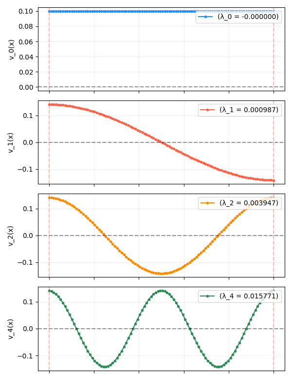 This one turned out to be really easy! Here it is slamming it for the first few eigenfunctions: